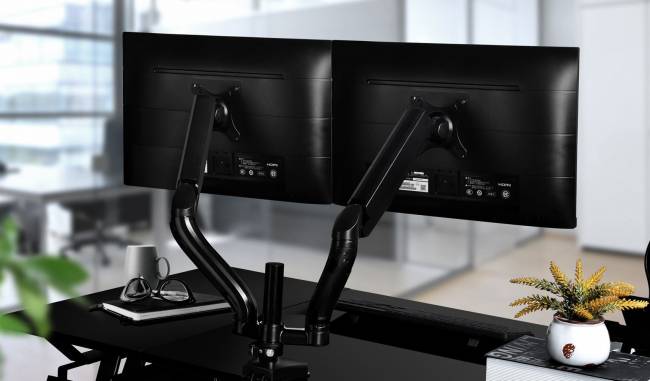 Comme la majorité des solutions du genre et parce que c'est un peu l’intérêt d'un tel produit, le FlexMonitor Duo permettra aussi la rotation à 360° et le pivot à 180°, ainsi qu'une inclinaison à 105°, de quoi mouvoir et positionner votre écran à peu près comme bon vous semble. Pour ne pas dénaturer le design moderne noir mat de l'ensemble, des colliers et passe-câbles sont présents pour permettre un montage propre de bout en bout.