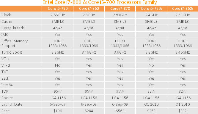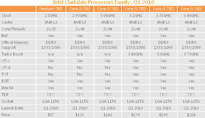 Ne nous demandez pas d'où le site HKEPC peut tirer toutes ses informations alors que l'ensemble des sites hardware sont pourtant sur les dents, à la recherche de la moindre information sur les futures gammes de CPU d'Intel, mais toujours est-il qu'il semble avoir mis la main sur des informations très intéressantes, puisqu'ils viennent de présenter non seulement les 3 processeurs Lynnfields attendus pour septembre, avec une date précise de lancement : le 6, mais nous apprennent également que deux autres Lynnfields de la série "S" à basse consommation devraient eux arriver début 2010, avec un TDP de 82W, et en communiquant leurs prix s'il vous plait. Comme si cela ne suffisait pas, ils annoncent également 6 références de Clarkdale qui arriveront également au premier trimestre 2010, avec caractéristiques complètes, gammes auxquels ils appartiendront (on apprend d'ailleurs que l'un des 6 processeurs Clarkdale sera dénommé Pentium), mais également les prix ! Alors bien entendu tout cela est à prendre avec des pincettes dans un premier temps, mais HKEPC s'est avéré jusqu'ici une source plutôt fiable pour les annonces exclusives d'arrivées de processeurs. Tableaux complets récapitulant toutes les informations sur ces 11 nouvelles puces en suite de news.