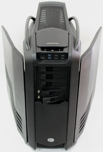 Voilà que Cooler Master nous sert quelques détails, croustillants ou pas, pour nous faire languir : Le Cosmos II sera composé en grande partie d'aluminium et sera tout de noir vêtu. Il pourra accueillir des cartes mères au format e-ATX, XL-ATX, ATX et M-ATX. Le front panel mettra a disposition deux ports USB 3.0, deux ports USB 2.0 (alors que le prototype en photo en possède 4), un port e-SATA et les mini-jacks audio. Nous avons la confirmation de la présence de 13 baies 3,5", dont deux hot swap, mais aussi de trois baies 5,25" et de 11 slots d'extension à l'arrière, dont un à la verticale qui devrait être équipé d'un bracket Storm Guard.