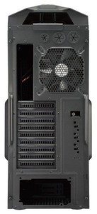 L'engin aux dimensions impressionnantes de 605,6mm X 250mm X 578,5mm (HxLxP) sera capable d'avaler tout ce que vous lui donnerez grâce à neuf baies de 5,25" découpées en trois blocs. Deux d'entre eux sont pivotants et amovibles. Ces cages accueilleront également les unités de 3,5" et 2,5" (8 et 13 unités respectivement). Outre les cartes mères au format ATX classique, vous pourrez y mettre du rikiki µ-ATX ou du gros XL-ATX si vous êtes plus gourmands! 10 slots d'extensions sont à disposition à l'arrière du boitier, dont un à la verticale équipé d'une équerre Storm Guard Security, ainsi que des passes-cloison pour le watercooling.