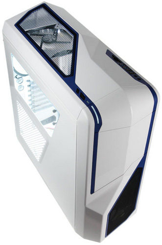Les nouvelles couleurs mises de côté, rien ne change pour ce qui est du boîtier en lui-même et nous avons toujours affaire à un "gros" moyen tour de 53cm de hauteur, 51cm de profondeur et 21cm de largeur pour 9kg sur la balance. Les cartes mères sont acceptées du format mini-ITX à l'ATX, avec 3 baies 5.25" et 6 emplacements 3.5" (possibilité d'y installer du 2.5"). La ventilation est confiée à deux modèles 120mm (avant + arrière) ainsi qu'un 140mm sur le dessus. A noter également que 4 ports USB sont accessibles au sommet dont 2 en USB 3.0.