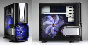 Nos confrères de Revioo ont donc testé ce boitier qui prend son sens dans la démesure de son créateur. Mais qu'a donc ce boitier pour être si spécial? Et bien il est pourvu de deux ventilateurs! c'est énorme ça, non? Ah vi, le plus important, ces deux ventilateurs ont un diamètre différent! affolant je vous disais! Arf, le premier mesure 25cm de diamètre sur la face avant, et nous sommes déja habitués à ce genre de ventilateur dans grand nombre de tours (voir notre comparatif par l'excellent Divx!). Oups , il manque le dernier : c'est juste un mini ventilateurounet sans importance de 33 cm de diamètre sur le capot latéral. Question look, il faut aimer le croisement de Bioman avec Transformers. Sinon je vous invite à vous rendre illico presto chez Revioo (mais vous revenez après hein) lire le dossier de ce boitier qui saura refroidir à peu près tout, même votre figure l'été!