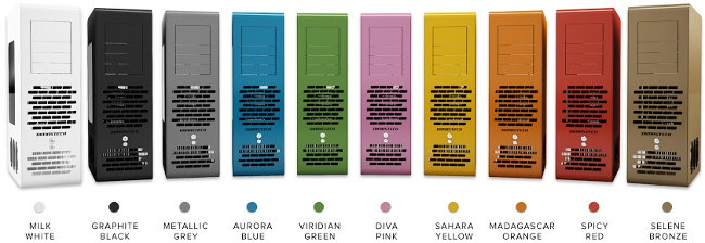 L'idée est assez simple, proposer un boîtier en aluminium dont chaque détail est configurable. C'est facile sur le papier, mais ça peut se compliquer dans la réalisation. Leur AMC aura quatre hauteurs, largeurs et profondeurs différentes, dix coloris en interne comme en externe, deux types de fenêtres (fumée ou pas) et six couleurs de boutons en façade pour ne pas jurer avec le reste de votre config. Rien que le choix dans les dimensions permettra d'adapter l'espace interne aux besoins de chacun et si vous y ajoutez un support de carte mère totalement démontable et allant du mini-ITX au HPTX, on arrive sur quelque chose de vraiment pratique à l'usage.