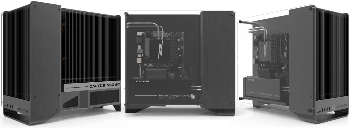Tout semble prêt pour que leur technologie de dissipation passive pour CPU et GPU arrive sur le marché. Ils ont même eu le temps de travailler l'esthétique de l'ensemble en s'offrant l'aide de noms connus, puisque Watermod y a mis sa patte et que différents partenaires de Calyos ont bossé sur un habillage qui ira du plus sobre au plus délirant, le mode licorne/pyro ayant les faveurs de Gustavo.