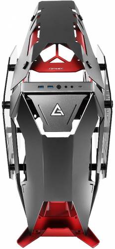 Antec donne une chance commerciale à son boîtier Torque. A mi chemin entre boîtier et table de bench, la philosophie de l'engin reste un boîtier ouvert, disons pas étanche de nuisances sonores, et au look extrêmement agressif. En effet penché en avant, le châssis est entouré de 14 pièces d'aluminium découpée avec précision, le tout entouré de deux panneaux en verre trempé. Voyons le style général :