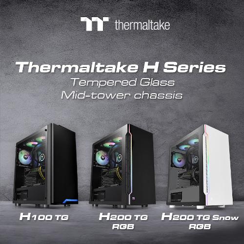 Après son show au Computex, voilà que Thermaltake se bouge du côté des boitiers PC avec deux modèles moyen tour, les H100 TG et H200 TG, - rien à voir avec notre Titi - ce dernier se déclinant aussi en version blanche. Leur dénominateur commun ? Une façade latérale en verre trempé, le must pour admirer sa configuration lumineuse.