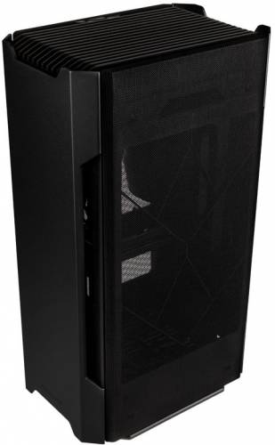 L'Evolv Shift Air n'est pas sans rappeler aussi (un peu) le format du Monsterlabo First, le refroidissement passif en moins. Comme son nom l'indique, l'enjeu du Shift Air est de fournir une aération exemplaire du harware dans un espace restreint, aujourd'hui avec la présence de deux panneaux latéraux quasi entièrement en mesh (textile à mailles larges) au lieu du verre trempé, un nouveau concept toutefois complété par une ventilation moins fournie qu'auparavant. Mini-ITX oblige, l'espace intérieur est toujours assez restreint et l'usage d'un AIO presque obligatoire pour le CPU. Enfin, la construction en hauteur offre toujours une occupation réduite de l'espace à une surface de 27 x 17 cm seulement et permet de poser l'Evolve Shift Air facilement à peu près partout, ou alors même horizontalement si ça vous chante !