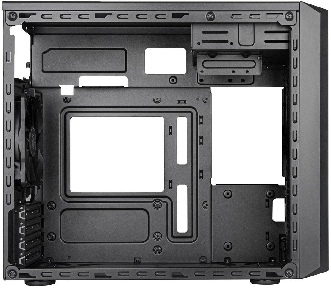 Bien qu'il s'agisse d'un boitier sans aucune grande prétention, l'on n’aura pas pour autant l'impression qu'il nous vient tout droit des années 90 ou 2000. Pas de beige (ouf), mais du noir bien contemporain pour l'ensemble de la structure en acier et en plastique, avec une conception tout de même assez soignée, discrète et carrée, plutôt industrielle.
