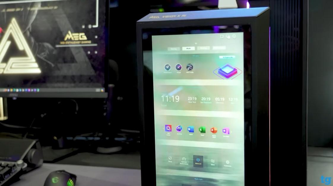 Pour en revenir au Computex 2024 et surtout à des conceptions plus classiques, le boîtier MSI MEG Vision X AI a eu son petit succès. Sa particularité ? L’intégration de « l'AI ENGINE de MSI dans son écran tactile AI HMI ». Dans un communiqué, la marque déclare que ce mécanisme offre « une détection intelligente [qui] permet d'optimiser automatiquement les paramètres matériels en fonction de l'activité du joueur ». MSI ajoute que « le MEG VISION X AI est également équipé d’une fonction d'assistant IA privé et dans le cloud. Grâce à MSI Artist x MSI Chat, il peut exécuter localement l'IA générative pour produire des images de haute qualité. […] Il peut automatiquement générer du texte, effectuer des questions-réponses et créer des résumés à partir de documents contenus dans des dossiers locaux le tout sans avoir besoin de connexion internet ». Bref, le filon IA exploité à fond.