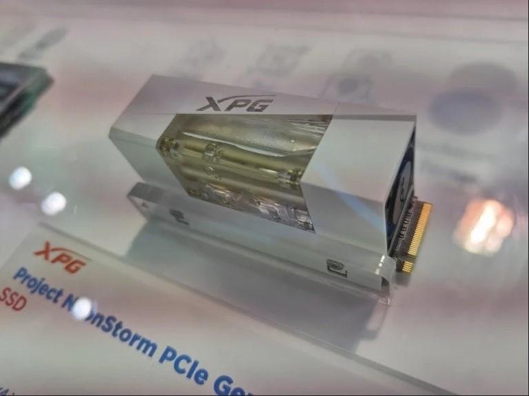 Pour les amateurs de watercooling, évoquons rapidement le NeonStorm M.2 d’Adata, photographié ci-dessus par PCMag.