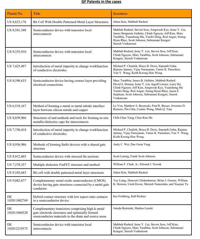 C'est donc avec un culot des plus remarquable que la firme a attaqué TSMC en justice (en passant par le Texas, histoire de bénéficier d'une juridiction clémente et d'un embobinage facilité)), mais aussi par l'US International Trade Comission, le District Court for Delaware et deux instances allemandes) pour la violation de 16 brevets concernant... le FinFET, justement. Car oui, certains comptent parmi ceux partagés par IBM... ce qui permet à Samsung, qui jouit également d'un partage similaire, d'être épargné de la plainte. Cela n'est par contre pas le cas d'Apple, Asus, Broadcom, Cisco, Google, HiSense, Lenovo, MediaTek, Motorola, Nvidia, OnePlus, Qualcomm, Xilinx, BLU et TCL, les autres entreprises concernées partenaires de TSMC sur le coup. Notez aussi que les processus concernés sont les 7nm, 10nm, 12nm, 16nm et 28nm, autant dire que GloFlo va carrément attaquer TSMC pour l'usage de processus qu'il n'est lui-même pas capable de maîtriser. Ironie, quand tu nous tiens...