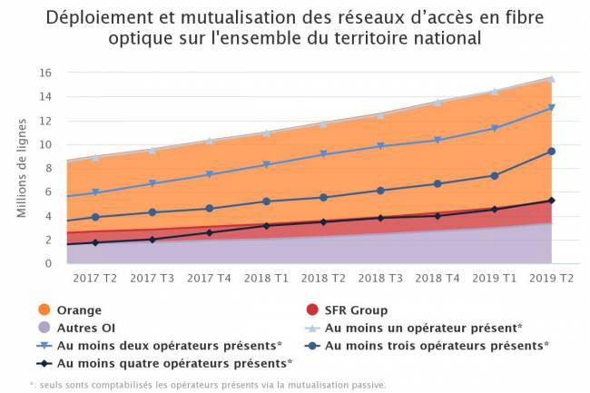 En effet, c'est le second point important - voire même le plus important - de ce trimestre. L'arrivée des opérateurs sur les RIP - Réseau d’Initiative Publique - et le partage des lignes déjà existantes permettent d'augmenter considérablement le nombre d'offres disponibles pour les abonnés. Cette année il n'est donc plus rare d'avoir au moins deux opérateurs - 84% de la population fibrée est éligible - avec surtout une grosse priorisation sur les zones moins denses gérées par les opérateurs privés, qui n’hésitent plus à faire des partenariats pour obtenir plus de clients. C'est donc des avancées majeures pour ce printemps, espérons que les résultats de cet été seront tout aussi bons. (source : ARCEP)