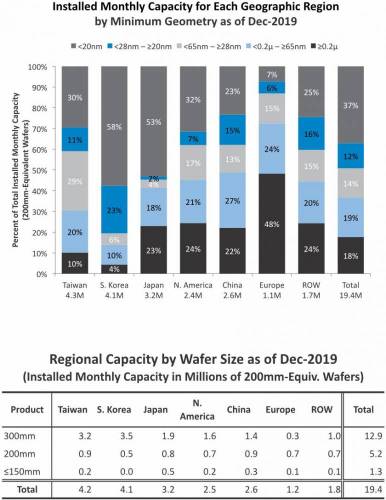 "Global Wafer Capacity 2020 - 2024" : la répartition mondiale fin 2019 et extrait des prévisions d'IC Insights ! |