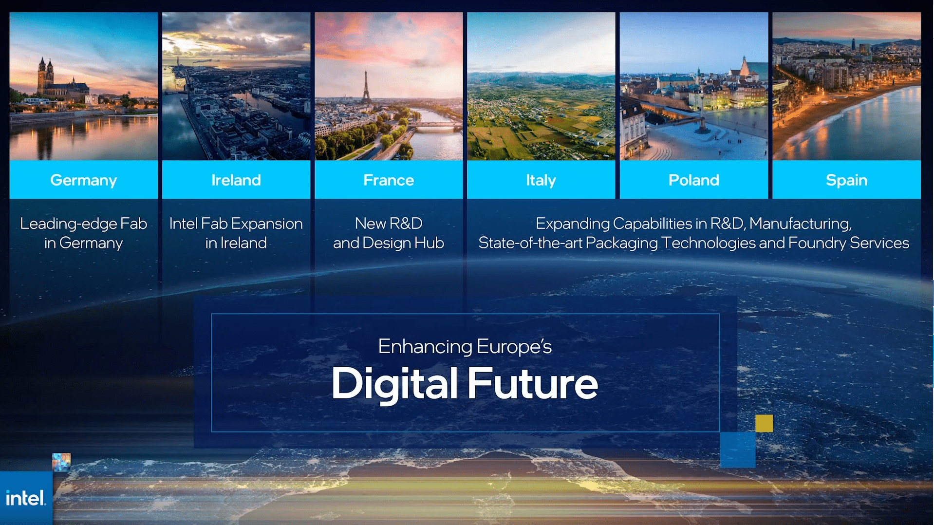 La partie la plus importante de ce projet sera la construction d'une « Mega Fab » de pointe en Allemagne, à Magdeburg (la dernière rumeur fut donc bonne), mais il s'agira aussi de construire un nouveau centre de R&D et de conception en France, et d'investir pour la R&D, la production et les services de fonderie en Irlande, Italie, Pologne et Espagne. En somme, l'objectif de fond est d'élaborer un véritable nouvel écosystème du semiconducteur en Europe et de contribuer à l'objectif européen de récupérer 20 % des parts de la production mondiale de puces d'ici 2030, tout en réduisant simultanément sa dépendance de la chaine d'approvisionnement mondiale, sans pour autant espérer atteindre une autonomie totale, jugée impossible.