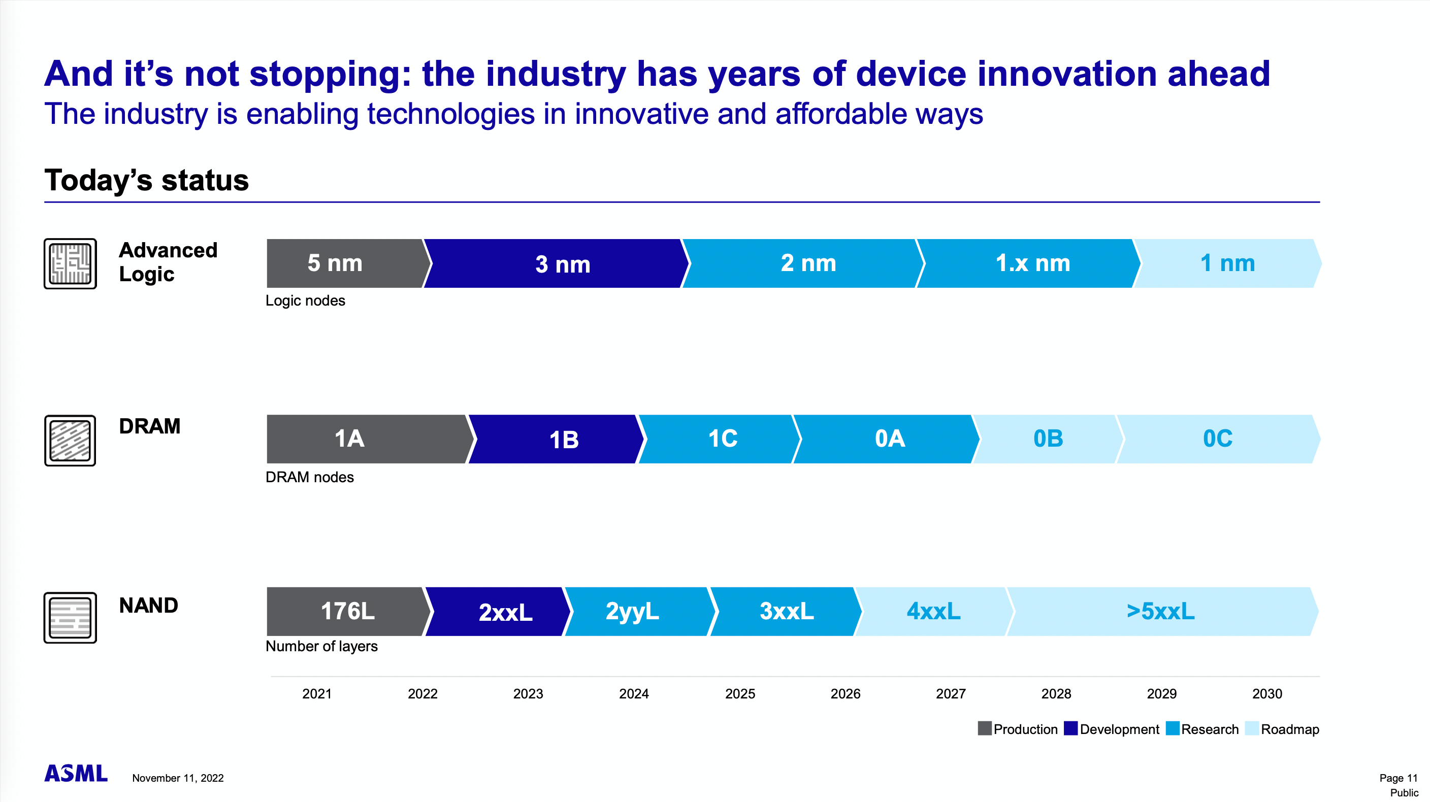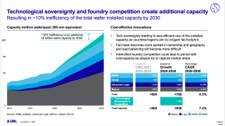 Sans plus attendre, voici les nombreuses diapos partagées par ASML avec son public et qui parlent pratiquement d'eux-mêmes pour la plupart. Ils nous présentent de nombreux chiffres, par exemple sur les investissements ou la croissance des différents secteurs d'activités du semiconducteur, l'évolution de la demande en wafer, les dépenses, mais aussi les évolutions technologiques attendues dans le monde du semiconducteur pour ces prochaines années. On vous laisse à présent découvrir tout ça à votre guise toute cette information plutôt intéréssante ! (Source)