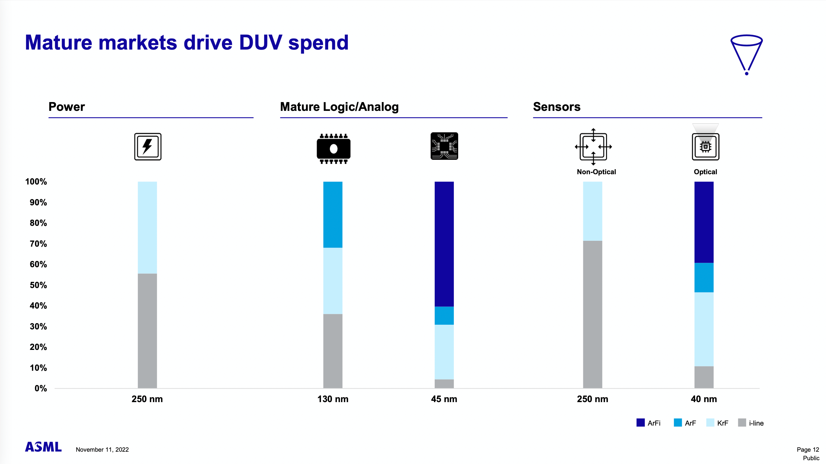 Répartitions attendues des rôles entre lithographie EUV, EUV High-NA et DUV. Cette dernière n'a pas dit son dernier mot et restera un moteur de croissance, avec une croissance attendue plus élevée que prévu.