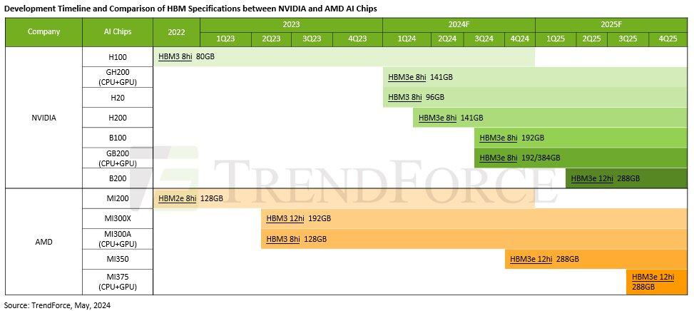 Entre les cGPU AMD et NVIDIA, la demande en HBM3e va augmenter au cours des prochains mois © TrendForce