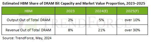 Parts de la HBM par rapport à la DRAM totale © TrendForce