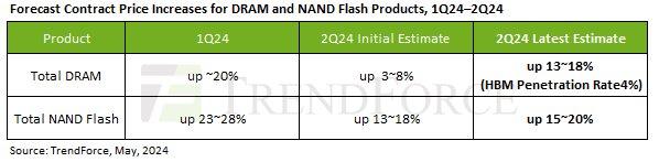 La société d'études de marché a donc révisé ses prévisions pour les prix contractuels des DRAM au deuxième trimestre : les hausses passent de 3-8 % à 15-20 %. Il s'agit du troisième trimestre consécutif d'augmentation à deux chiffres.