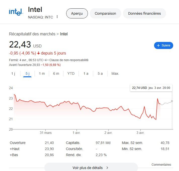 Les marchés financiers ont rapidement réagi : l’action Intel a momentanément repris des couleurs. Reuters précise toutefois qu’Intel et TSMC se sont refusées à tout commentaire ; mutisme également du côté de la Maison Blanche.