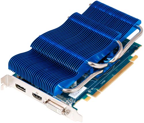 Dans le Top ten des titres en manque d'inspiration, celui-ci vaut sa place ! HIS Digital a décidé de passer ses HD 7700 sous silence en les équipant d'un radiateur seul. Bienvenu au passif, voilà la paire formée avec Sapphire. Par contre seule la HD 7750 dotée d'un Cape Verde se fait museler, la HD 7750 iSilence 5 possède un gros radiateur bleu ayant 4 caloducs qui sont perpendiculaires au sens des ailettes, une épaisseur obligatoire dual slot bien qu'il n'y ait qu'une équerre arrière occupée, et le reste est clasique.