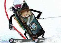 Voilà qui clôt notre tour de la MSI 8800GT qui vous a tant donné de lecture aujourd'hui. Après une dure journée de labeur, la MSI 8800GT est partie se ressourcer à Courchevel, sur les pentes enneigées de la station. Aussi notre paparazzi maison Arrakys a suivi la carte sur les pistes pour vous offrir ce cliché unique au monde!