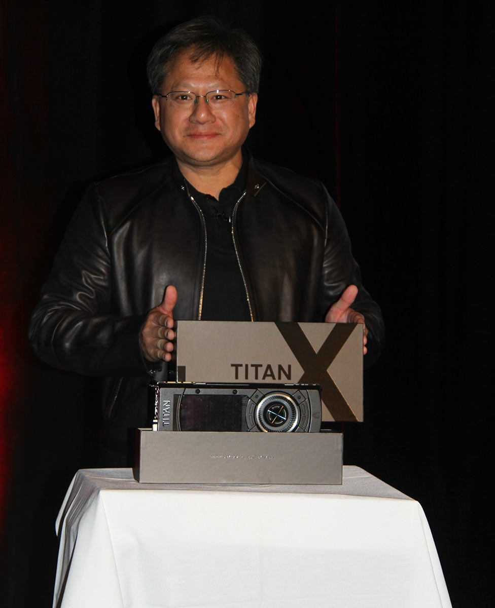 On attendait AMD suite à un Tweet d'un des patrons d'Oxide Games, finalement c'est Jen Hsung qui a fait la nique à tout le monde lors de la GDC. Alors que l'un des pontes d'Epic, Tim Sweeney, parlait de l'Unreal Engine 4 et de son développement particulier, le boss du caméléon a fait une irruption dans la salle avec un sample de GTX Titan X dans les mains. Comme tout le monde le sait, on l'attendait cette carte avec un GM200, mais peut-être pas aussi vite dans le timing, car ce sample indique que la carte est très avancée et est capable de passer en mode production bientôt. Car pour ne rien gâcher, ce sample n'a pas été, cette fois, coupé à la serpette !