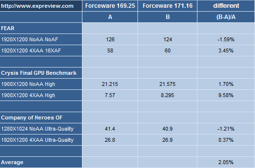 Forceware 171.16 de nouveau comparés |