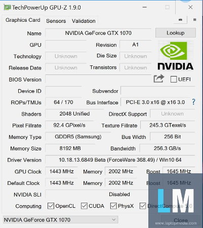 Ces derniers temps, on parle beaucoup des nouveaux GPU desktop, mais la gamme pour portables est aussi dans les tuyaux et la toile commence à s'activer à ce sujet. C'est qu'il faudra avoir de quoi renouveler les gammes à la rentrée des classes et c'est donc sans surprise que l'on découvre chez LaptopMedia (ici en DirectX 11 et là en DirectX 12) des chiffres donnés pour être ceux d'une GTX 1070 pour portable en FullHD et UHD, avec capture d'écran GPU-Z à l'appui.