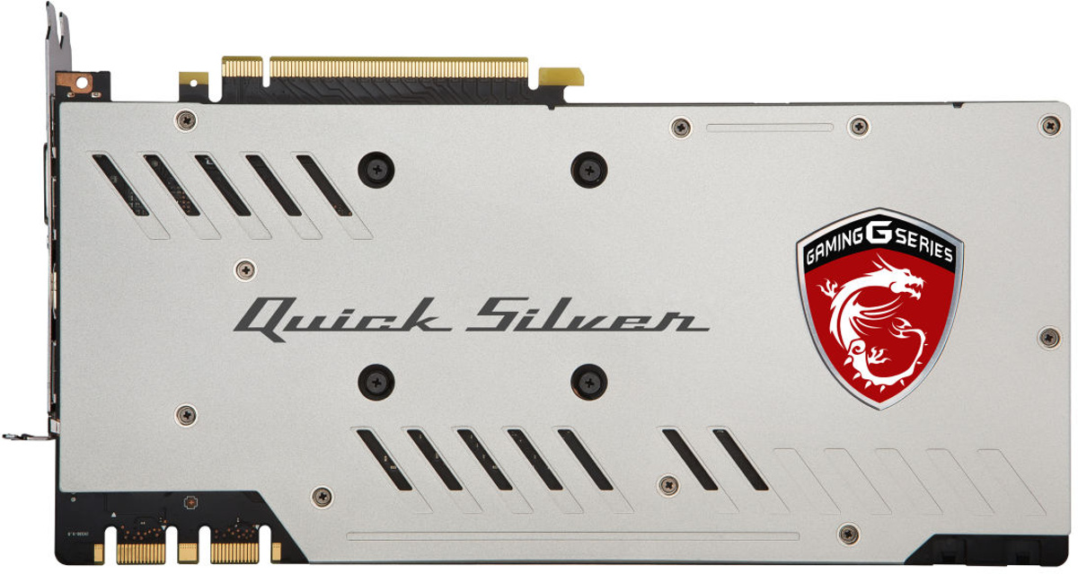 La GTX 1070 Quick Silver est refroidie par un Twin Frozr VI qui change de couleur (vous remarquerez qu'il n'est pas rouge) et sa backplate est aussi retravaillée pour l'occasion. Côté PCB, on a apparemment un équivalent à la GTX 1070 Gaming X avec un connecteur 8-pin accompagné d'un 6-pin pour envoyer du jus d'électron à un étage d'alimentation à dix phases. Côté fréquences, la carte proposera trois modes différents. En mode OC, le GPU sera à 1607/1797MHz et la mémoire à 2027MHz. En mode Gaming on passe à 1582/1771/2002MHz et en mode Silent à 1506/1683/2002MHz. A noter qu'elle existe en version OC ou pas et que la seconde aura dans les mêmes modes avec des fréquences de 1531/1721/2002MHz (OC), 1518/1708/2002MHz (Gaming) et 1506/1683/2002MHz (Silent).