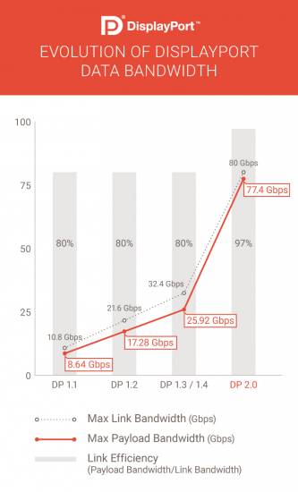 L'avènement des écrans 4k et l'apparition de ceux en 8k sur le marché mène la vie dure aux pauvres protocoles de transport de flux vidéo. Dans le cas du DisplayPort son débit n'a pas été mis à jour de puis 2014 - soit près de 5 ans - depuis la version 1.3 et ça devient juste avec les nouvelles dalles. C'est pour cela que VESA a annoncé la nouvelle monture du DisplayPort qui passe cette fois en mode 2.0 pour faire peau neuve et figure d'innovation.