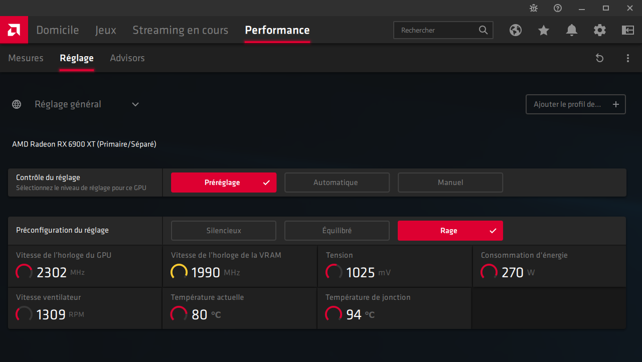 Le mode Rage est disponible sur la RX 6900 XT à l'instar de la RX 6800 XT