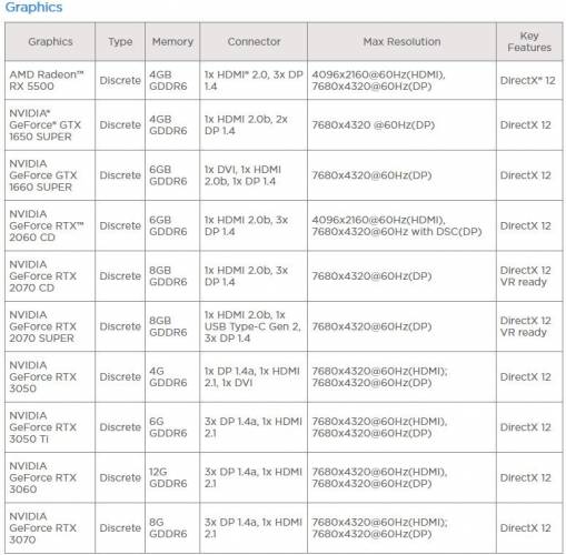 Alors Lenovo a publié une liste de GPU qui seraient disponibles pour une série PC à customiser, le Legion R5 28IMB05. Ce dernier, qui pédalera avec des CPU Comet Lake, peut accueillir plein de GPU allant de la RX 5500 et la GTX 1650 SUPER en bas, jusqu'à la RTX 3070 en haut. Mais au milieu, c'est intéressant. On note la présence de la RTX 3050 dotée de 4 Go de GDDR6, de la RTX 3050 Ti pourvue de 6 Go de GDDR6, et de la RTX 3060 avec 12 Go de VRAM. Par cette occasion, Lenovo a confirmé le distinguo qui sera fait entre RTX 3050 Ti et 3060, et donc annihile la rumeur de deux spécifications différentes au sein du seul nom RTX 3060. (Source TPU)