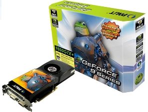 La sortie des 9800GTX+ approche à grands pas (16 juillet), aussi la valse des modèles devrait s'accélérer dans les jours à venir. Ce matin c'est Palit qui dégaine, avec un modèle on ne peut plus classique qui conservera les fréquences d'origine, pour rappel 738/1836/2200. Le refroidissement est lui aussi le modèle de référence, surplombé d'un gros sticker représentant une grenouille sur fond orange qui pique un peu les yeux, il fallait oser... La carte sera compatible Tri-SLI et CUDA pour gérer la PhysX, et bien entendu est équipée du G92b gravé en 55nm qui permettra à la carte de ne pas consommer plus qu'une 9800GTX classique malgré l'augmentation de la fréquence. (Source: TechConnectMagazine)