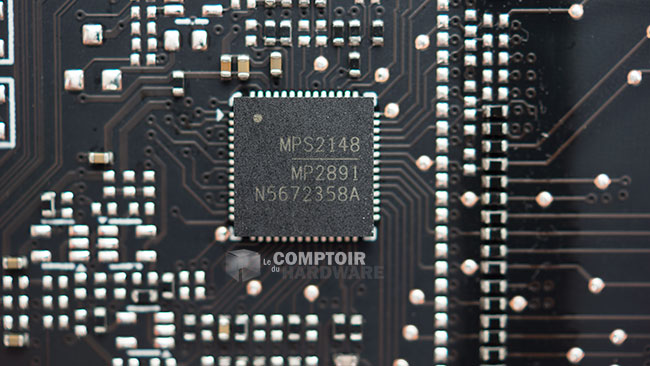 Tout ce petit monde est animé par un microcontrôleur MPS (Monolithic Power Systems) MP2891, une solution très haut de gamme montrant le soin apporté pas ASUS à la conception de ses RTX 3090 Ti.
