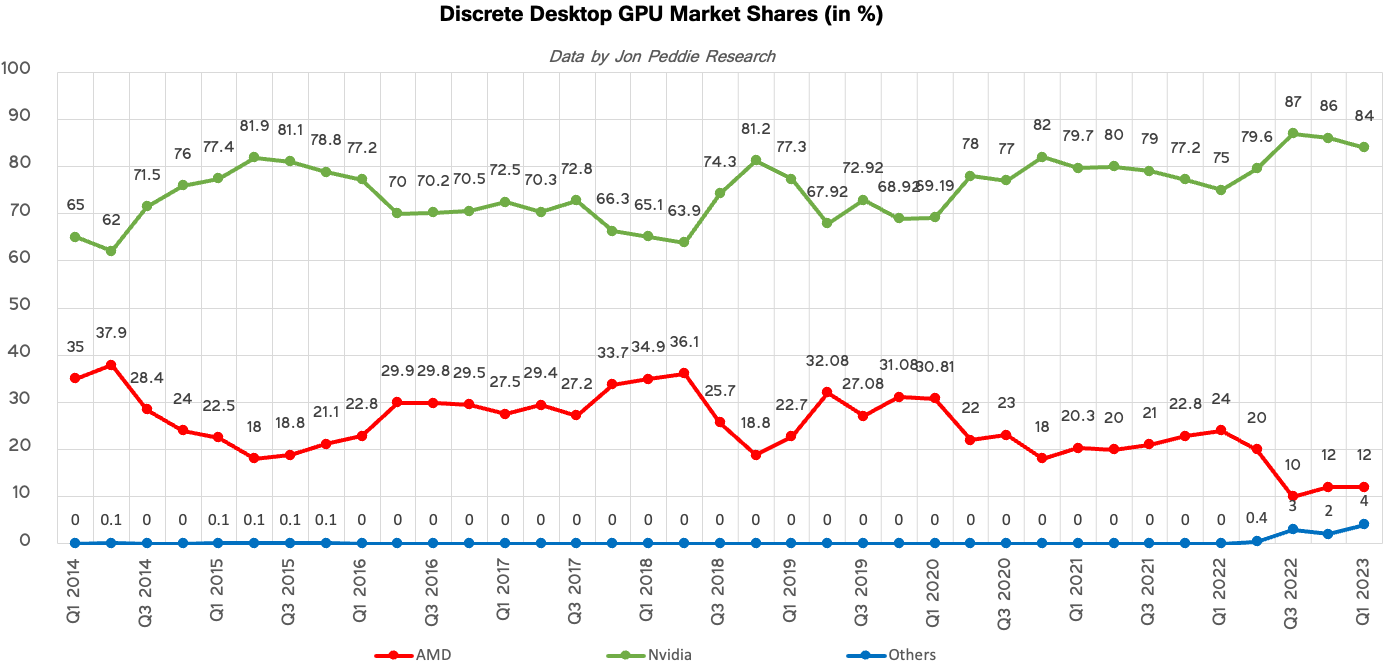 Ventes de GPU : la correction perdure sur le premier trimestre 2023, et les parts de marché évoluent peu |