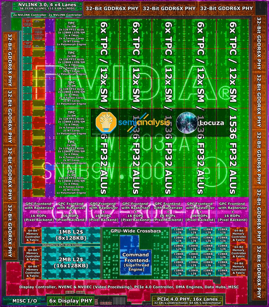 608,5 mm² de die commentés sur AD102 en 4N © Locuza + Semianalysis