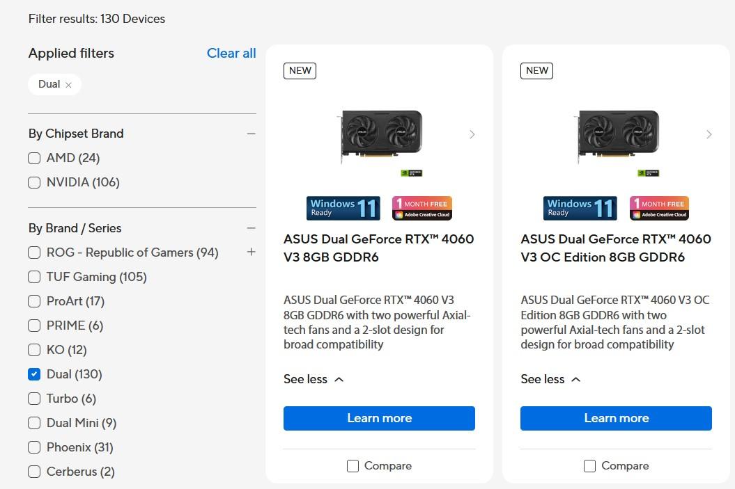Asus compacte encore sa RTX 4060 Dual, avec une V3 affinée |