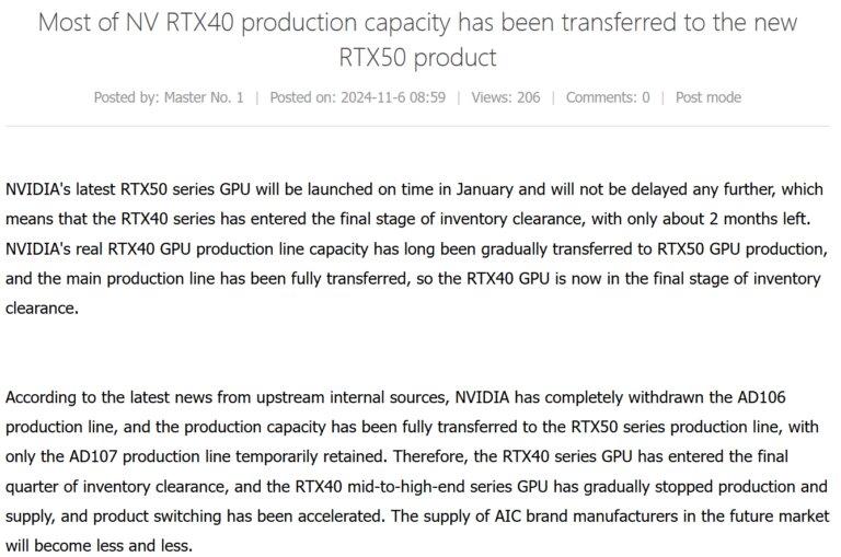 « NVIDIA a complètement fermé la ligne de production AD106, toute sa capacité étant réaffectée aux lignes de la série RTX 50. Seule une ligne AD107 est temporairement conservée », prétend la source.