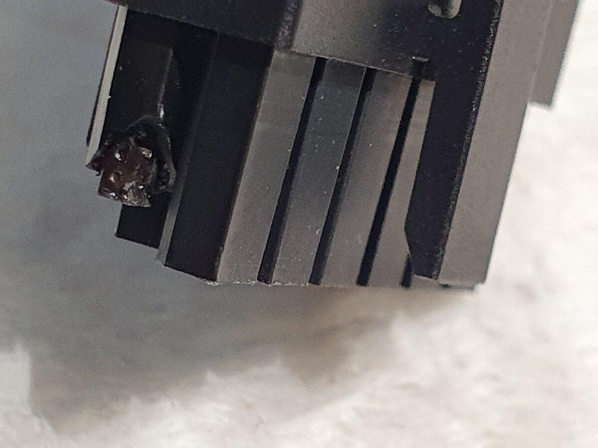 Rassurez-vous, le CDH n’est pas devenu les Câbles du Hardware (blague adaptée de celle de VideoCardz) ; seulement ceux de la GeForce RTX 5090 constituent l’actualité brûlante du moment. Vous l’imaginez, la vidéo de Der8auer montrant des températures aberrantes a suscité de nombreuses réactions. Par ailleurs, Moddiy, la société pourvoyeuse du câble calciné du Redditeur Zéro, avait mis en ligne une nouvelle recommandation. Enfin, un autre Redditeur a signalé son cas, tandis qu’un confrère, en l’occurrence John Papadopoulos de DSOGaming, a retiré le connecteur qui alimentait sa GeForce RTX 4090 depuis maintenant deux bonnes années afin de l’examiner. Son constat : le plastique a légèrement fondu.