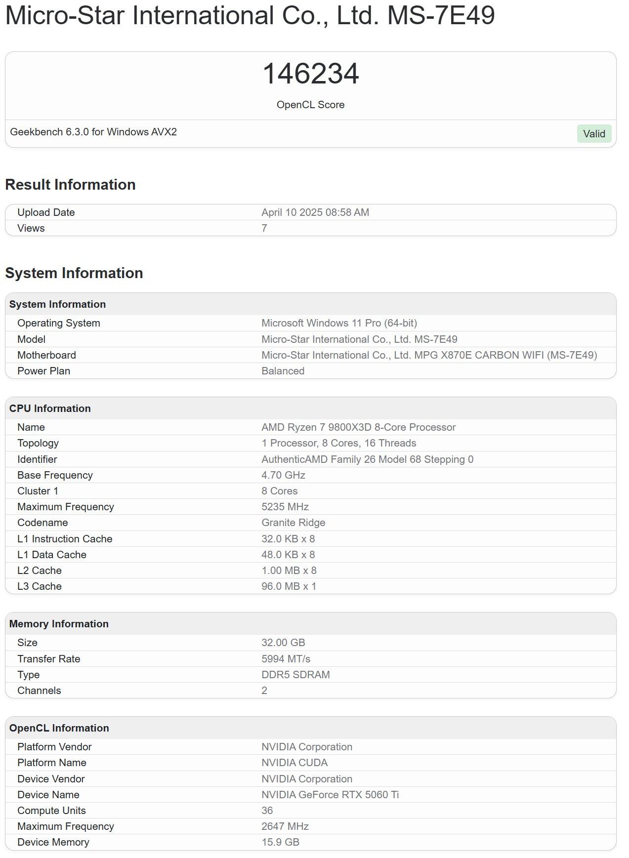 GeForce RTX 5060 Ti : des performances Geekbench en demi-teinte |