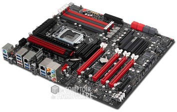 Elle en fait tourner des têtes cette coquine de Sandy. Celle d'Asus a fait un tour complet pour elle ! PCWorld a testé la Maximus IV Extreme, une carte mère de la série Republic of Gamer qui a pris de l'embonpoint, puisqu'elle est au format Extended ATX. Afin de soutenir les grosses configurations SLi, elle embarque également une puce NF200 de Nvidia.