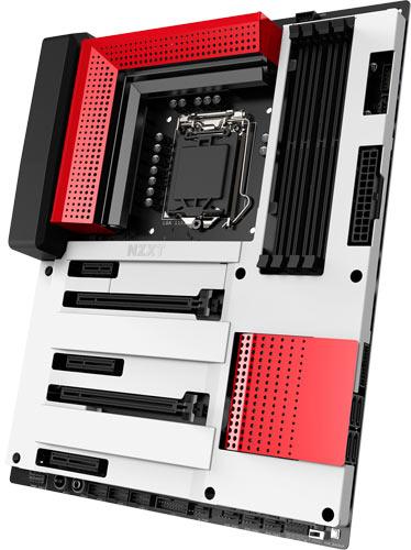 NZXT se lâche et profite de son élan (boîtiers H700i et H400i) pour lancer sa première carte mère. C'est la N7 Z370 qui est, comme son nom l'indique, destinée aux CPU Intel de 8è génération, alias les Core iX 8000. Fabriquée et BIOSisée par ECS, elle embarque 15 phases d'alimentation, 4 slots de DDR4 jusqu'à 3866 MHz, et possède surtout un look customisable. De base, le PCB est noir, mais il existe un cache complet du PCB métal noir, qui ne laisse apparent que les slots de mémoire, le socket et les slots PCIe, ainsi que les branchements divers et ATX.