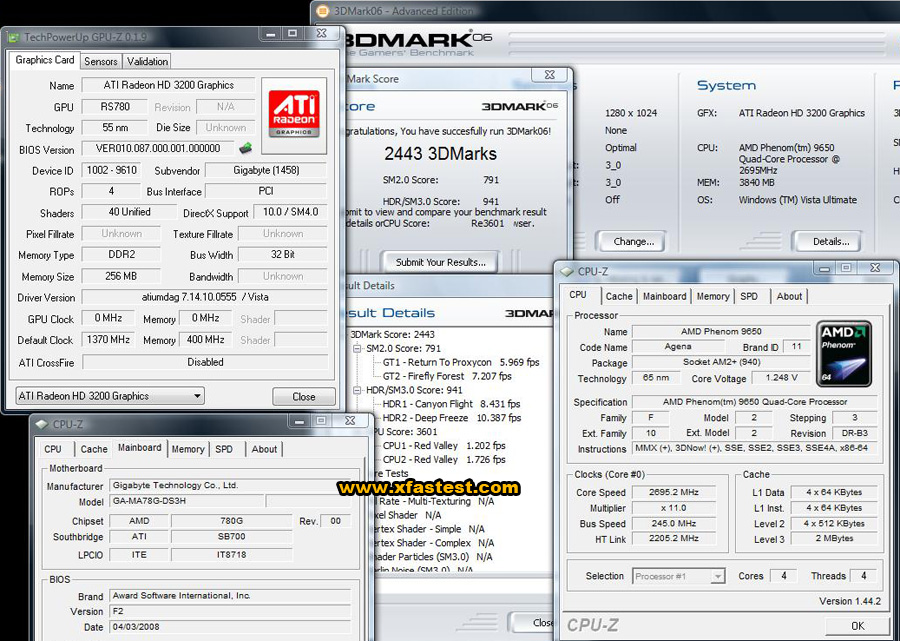 Il s'agit bien sûr du Radeon HD3200, nom donné à l'IGP intégré à l'AMD 780G. Nous vous avions déjà relayé en début d'année l'overclocking de ce chip graphique à 1GHz, mais il semblerait qu'il était alors loin d'avoir atteint ses limites puisque ce sont maintenant 1370MHz qui constituent son nouveau record d'overclocking. Une fréquence impressionnante quand on sait que Nvidia de son côté lutte avec son GeForce 8200 avec des soucis de surchauffe entre autre pour atteindre ne serait-ce que les fréquences d'origine prévues par la marque. Ce problème ne semble vraiment pas exister chez AMD/ATI ! La carte mère de l'exploit est la Gigabyte GA-MA78G-DS3H. (Source: Xfastest)
