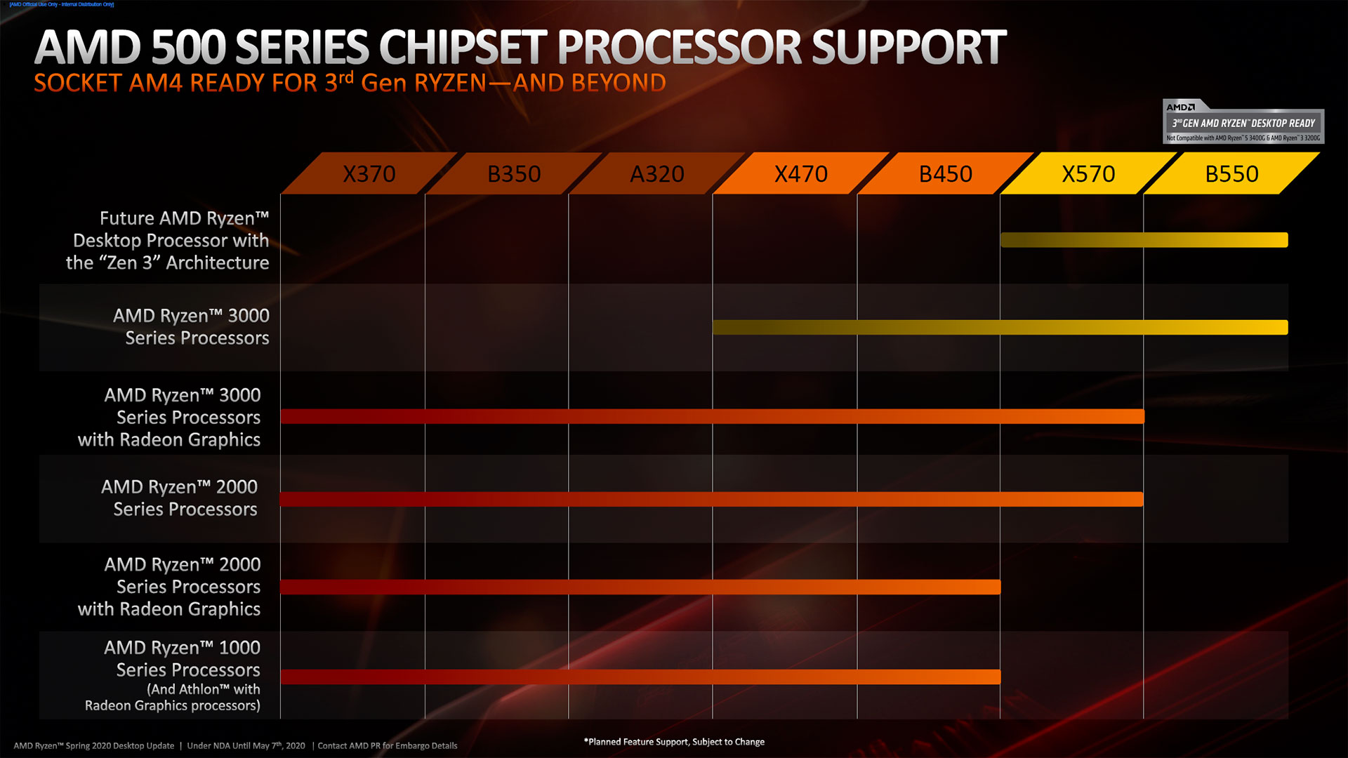 On se souvient qu'AMD, lors du lancement du chipset B550 et des Ryzen 3 3000, avait publié un slide qui faisait grincer des dents (lire l'article pardi). En effet, on y apprenait que seuls les chipsets série 500 étaient compatibles avec Vermeer, la prochaine déclinaison de Ryzen desktop 4000. Mais comme nous le soulignions dans notre test, une petite astérisque en bas de graphique impliquait que des modifications pouvaient être apportées par la suite. La preuve en image !