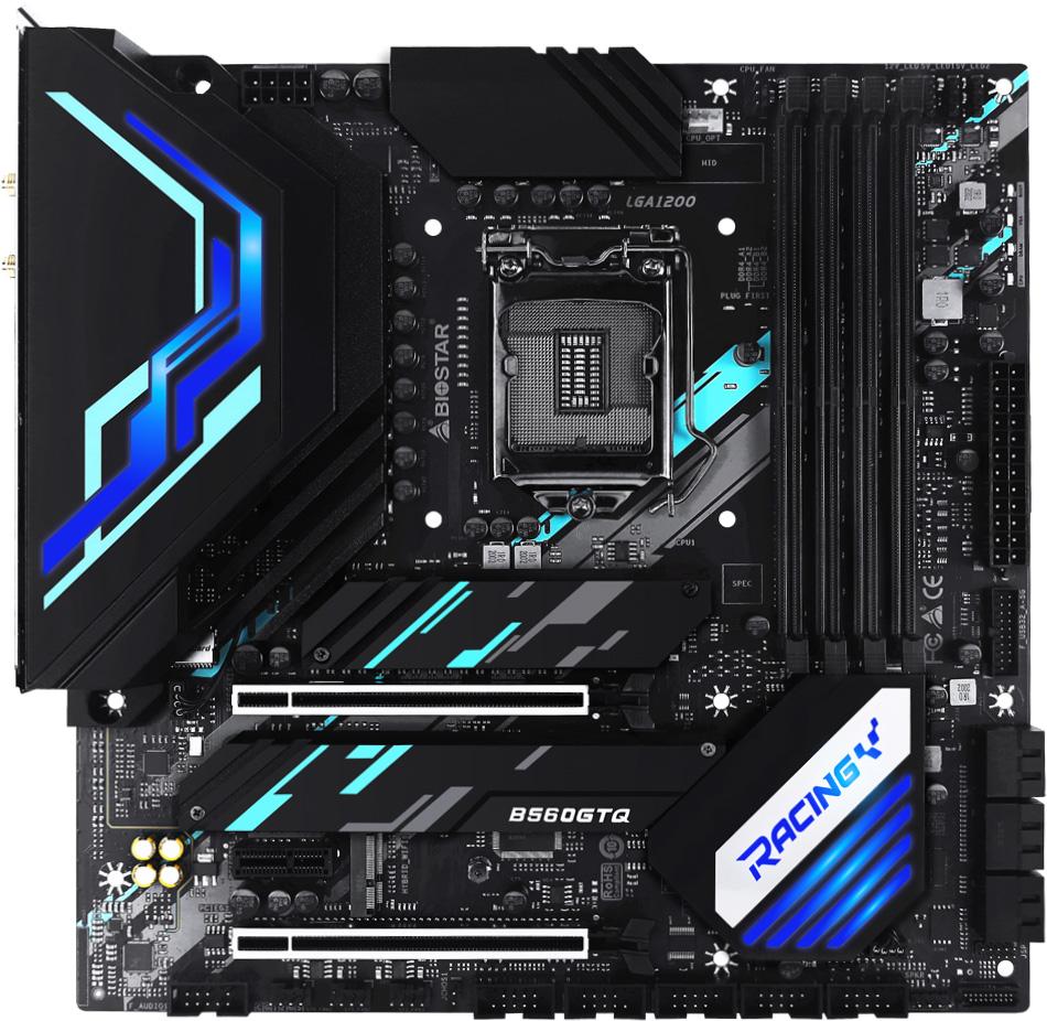 La gamme Racing n'a cependant pas à pâlir face à sa nouvelle grande sœur, et se permettra de jouer avec les fréquences à un tarif plus raisonnable avec les Racing Z590GTA (ATX) et Racing B560GTQ (mATX). L'alimentation reste solide, avec des circuits de 14 VRM (Z590GTA) et 12 VRM (B560GTQ), ce qui permettra normalement de profiter correctement de la majorité des CPU et même de se permettre un peu d'overclocking. Pareil, les branchements pour le Wi-Fi sont bien là, mais il faudra investir dans une carte dédiée pour en profiter.