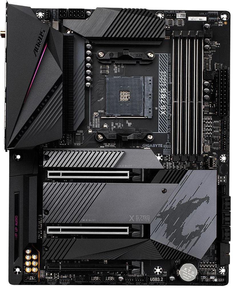 L'entrée de gamme du haut de gamme est représenté par la X570S GAMING X et une X570 UD. Deux modèles forcément moins touffus et chargés que le reste. C'est du grand classique de la carte mère de chez GIGABYTE avec un équipement plutôt standard et de série, comme du Wi-Fi 6 et réseau 2,5 Gb/s, une connectique interne et externe correcte, mais tout de même toujours avec un refroidissement de taille, juste moins élaboré. Des solutions qui suffiront amplement pour les moins gourmands qui ne veulent pas faire l'impasse sur certaines nouveautés.