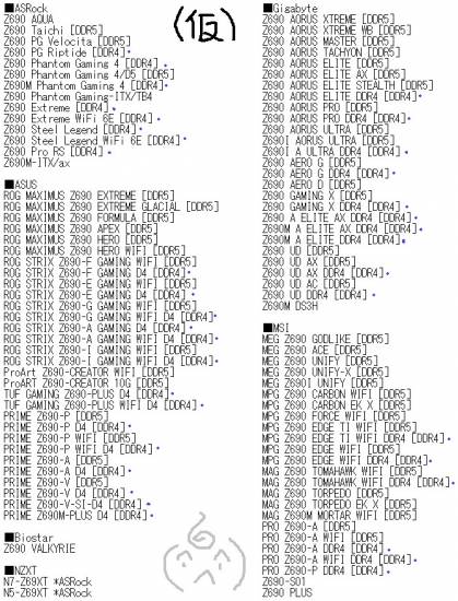 Une liste de 100 mobales à venir en Z690 |