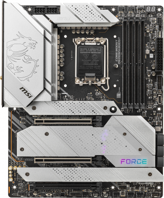 Après avoir fait le tour des (nombreuses) cartes mères Z690 de GIGABYTE, rendons une petite visite au zoo de MSI. Comme à son habitude, le constructeur a fait un peu moins fort que ses compatriotes taïwanais en matière de quantité, vous ne trouverez chez lui « que » 14 modèles Z690 pour l'instant, en sachant que certains manquent encore à l'appel, dont une référence GODLIKE et la PRO Z690-P DDR4. Au vu des monstruosités hors de prix qu'on dévoilées les autres fabricants au sommet de leur catalogue respectif, nul doute que MSI n'y manquera pas non plus, le fabricant garde probablement le « meilleur » pour la fin. Pour l'instant, sa gamme culmine avec la MEG Z690 ACE, suivie d'un paquet de modèles aux nomenclatures déjà bien connues, si ce n'est peut-être pour la FORCE, qui semble vaguement vouloir imiter le style épuré d'une AERO de chez GIGABYTE. Comme chez les autres, MSI aussi a fait un effort de proposer un certain nombre de variantes DDR4, mais il faut avouer qu'il n'y en a pas tant que ça, seulement 4 pourront fonctionner avec l'ancienne génération de DRAM.