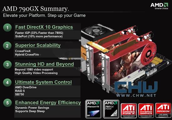 AMD prépare en cachette le successeur du déja très convaincant 780G. Ce chipset intègre tout comme le 780G une solution graphique maison, qui serait 33% plus rapide. Déja que le 780G était devant la concurrence en terme de performance, ce 790GX devrait faire mal donc. Mais ce n'est pas tout puisque le Crossfire en 2x16x sur ports PCIExpress 2.0 est de la partie tout comme le Crossfire X et l'hybrid Crossfire. Et pour terminer AMD introduirait avec ceci le southbridge SB750 qui prendra la relève du SB600 actuel qui limite pas mal l'overclocking. Affaire à suivre en coulisses, des slide AMD publiés par Chilehardware vous attendent en page 2 de cette news.